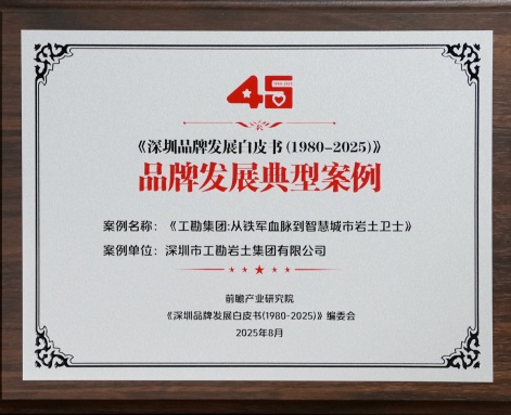 深圳市工勘巖土集團(tuán)有限公司(簡稱“工勘集團(tuán)”)報(bào)送案例圍繞“巖土筑基+數(shù)智拓新”主題,聚焦工勘集團(tuán)從基建工程兵到智慧城市建設(shè)綜合服務(wù)商的品牌發(fā)展歷程,呈現(xiàn)企業(yè)與深圳經(jīng)濟(jì)特區(qū)同呼吸、共命運(yùn)的發(fā)展成果。案例獲得評委會(huì)一致認(rèn)可,被命名為《工勘集團(tuán):從鐵軍血脈到智慧城市巖土衛(wèi)士》,并成功入圍“深圳經(jīng)濟(jì)特區(qū)建立45周年品牌發(fā)展典型案例TOP100”和“深圳經(jīng)濟(jì)特區(qū)建立45周年卓越品牌”。工勘集團(tuán)黨委書記雷斌憑借工匠精神推動(dòng)巖土工程智能化升級、助力行業(yè)科技進(jìn)步等方面的突出貢獻(xiàn),入圍“深圳經(jīng)濟(jì)特區(qū)建立45周年品牌功勛人物”。