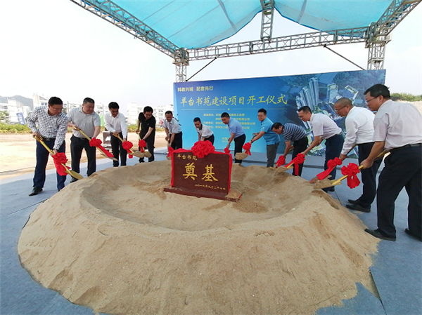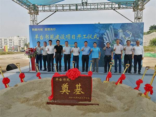到場(chǎng)的領(lǐng)導(dǎo)、嘉賓一同為“羊臺(tái)書苑”的奠基石揭幕并培上第一鍬土,預(yù)祝項(xiàng)目開工大吉、順順利利。